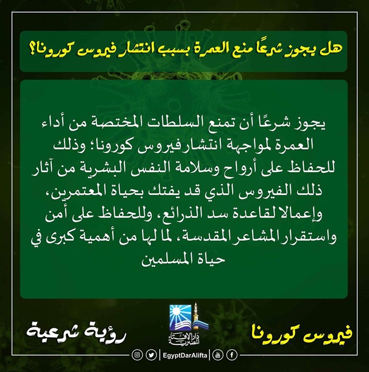 5. هل يجوز شرعًا منع العمرة بسبب انتشار فيروس كورونا؟