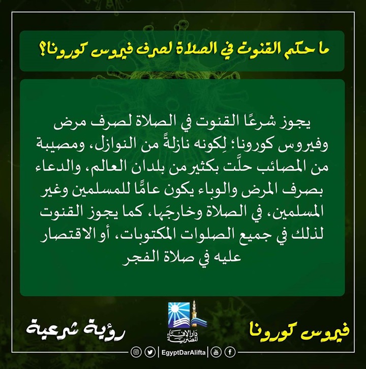 4. ما حكم القنوت في الصلاة لصرف فيروس كورونا؟