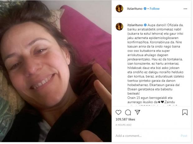 أعلنت الفنانة إيتزيار إيتونو، نجمة المسلسل الإسباني الشهير La casa de papel، عن إصابتها بفيروس كورونا المستجد.