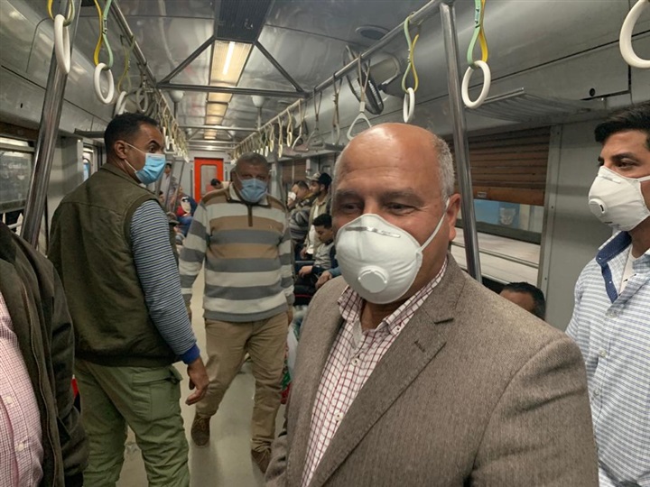 بالصور| وزير النقل يفاجئ العاملين بمترو الشهداء قبل بدء الحظر