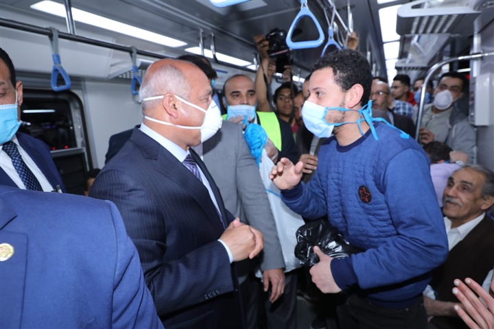 وشهد الوزير توزيع الكمامات على عدد كبير من الركاب سواء داخل المحطة أو في عدد من القطارات وكذلك تركيب أجهزة لتعقيم الايدي في كافة انحاء المحطة، حيث ثمن الوزير هذه المبادرة الوطنية، مشيرا إلى أن رجال مصر الوطنين دائما في خدمة المواطن المصري داعيا المواطنين بارتداء الكمامات وخاصة في وسائل المواصلات مشيرا إلى أنه يتابع على مدار الساعة تطهير وتعقيم محطات وقطارات مترو الأنفاق.