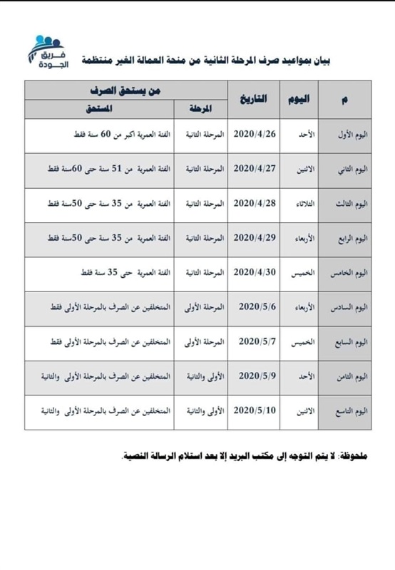 ننشر مواعيد صرف المرحلة الثانية من منحة العمالة غير المنتظمة ٢٠٢٠ ( مستند)