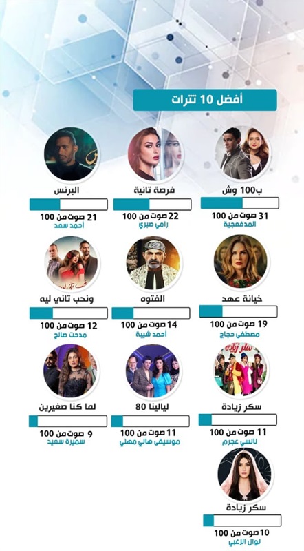وجاء ترتيب أفضل 10 تترات كالتالي ضمن سباق رمضان كالتالي :