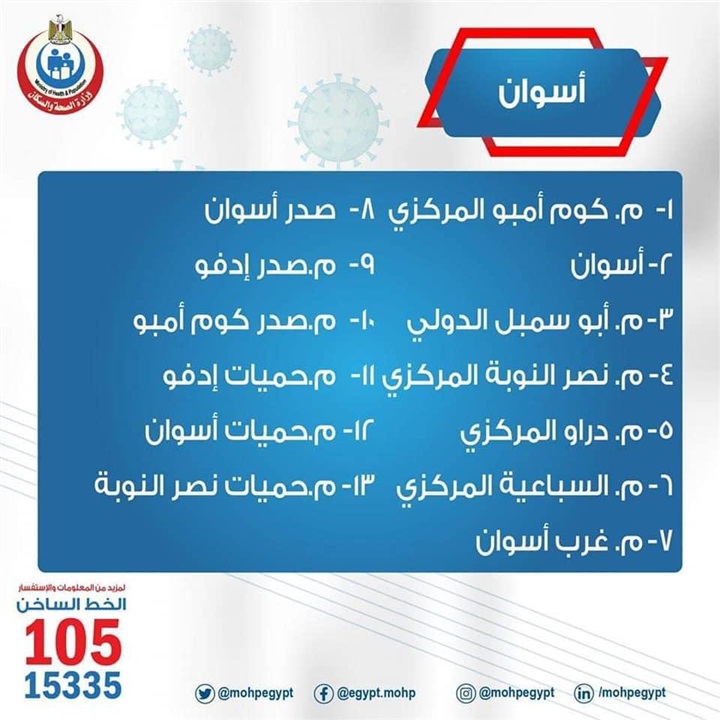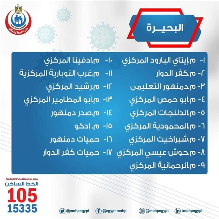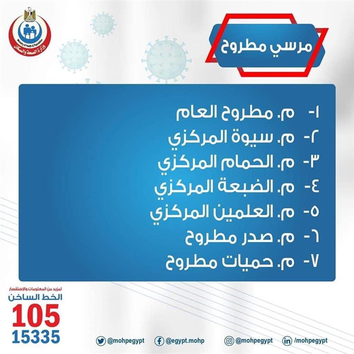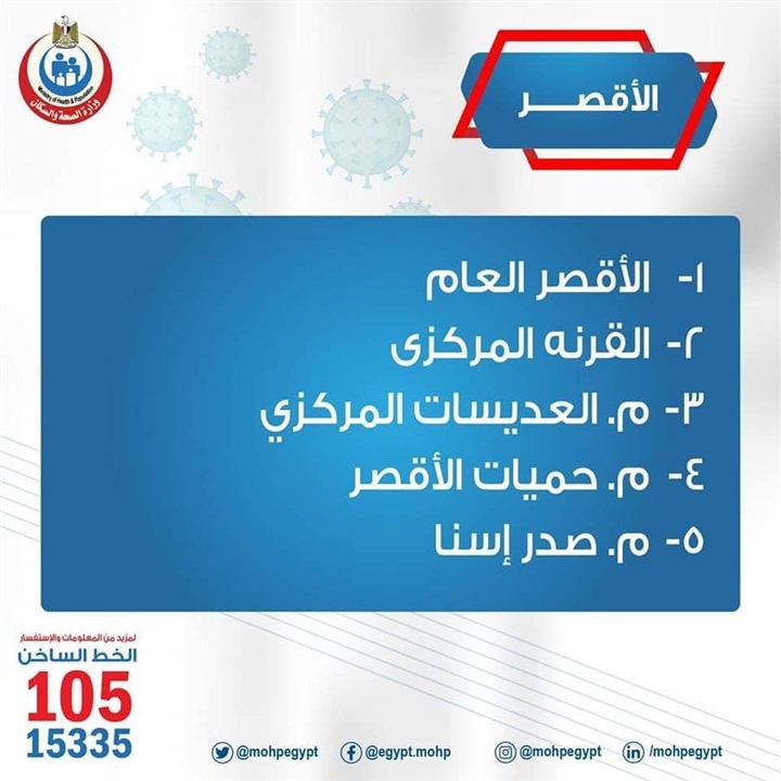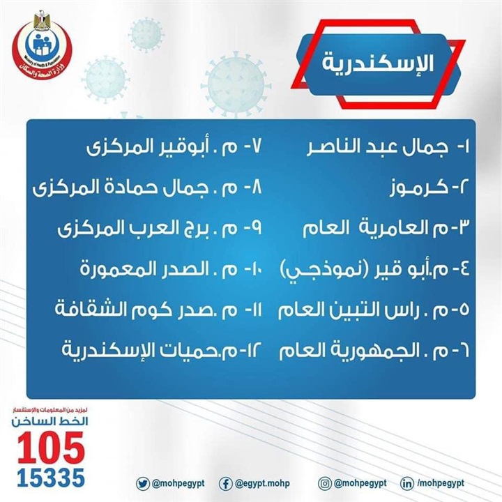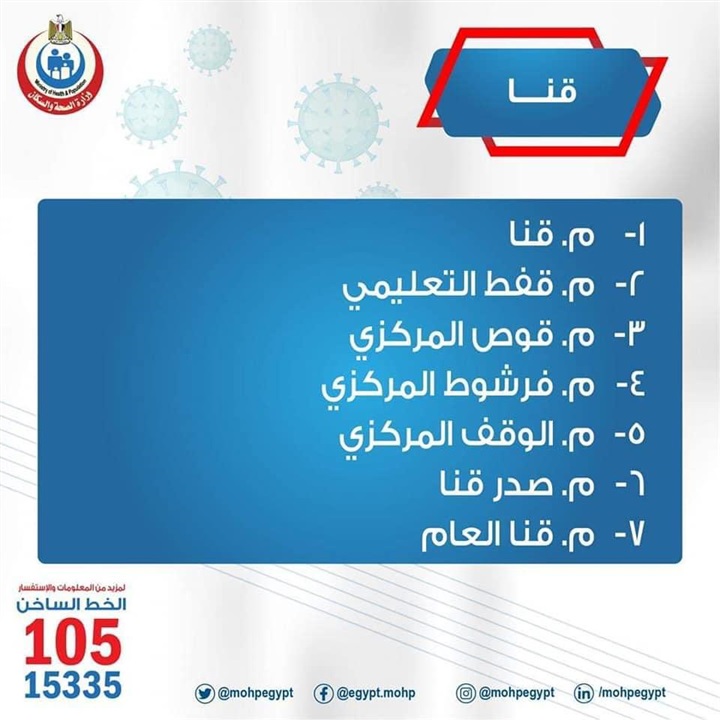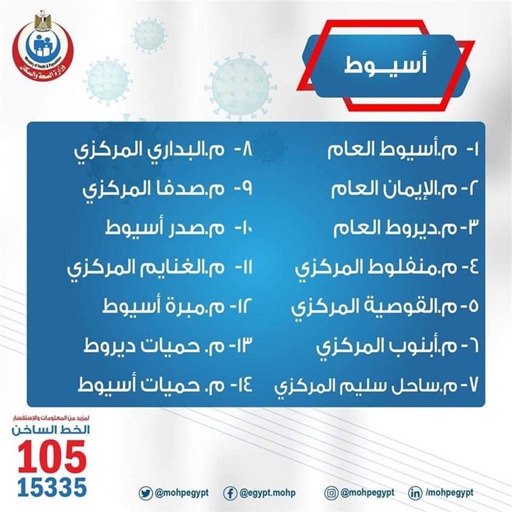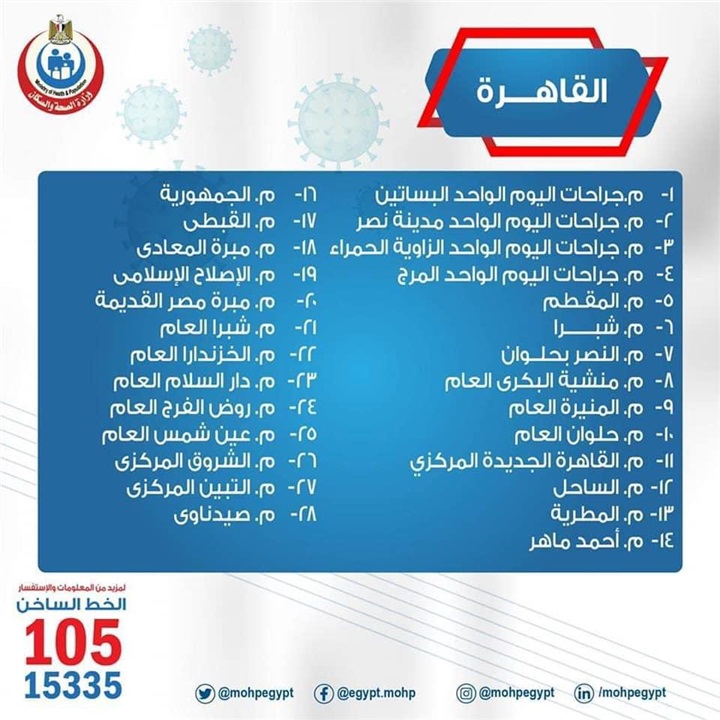 ونشرت الصفحة الرسمية للوزارة عبر "فيس بوك" إنفوجراف بأسماء المستشفيات المخصصة فى كل محافظة.