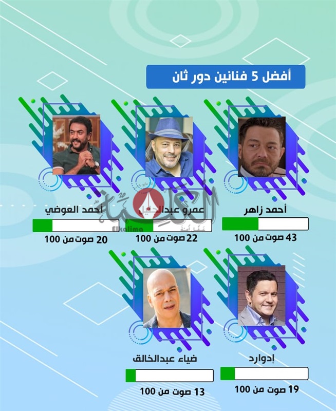 فيما حصل الفنان محمود حافظ على 12 صوتا، وحصل الفنان أحمد وفيق على 10 أصوات، وحصل الفنان خالد سرحان على 8 أصوات،