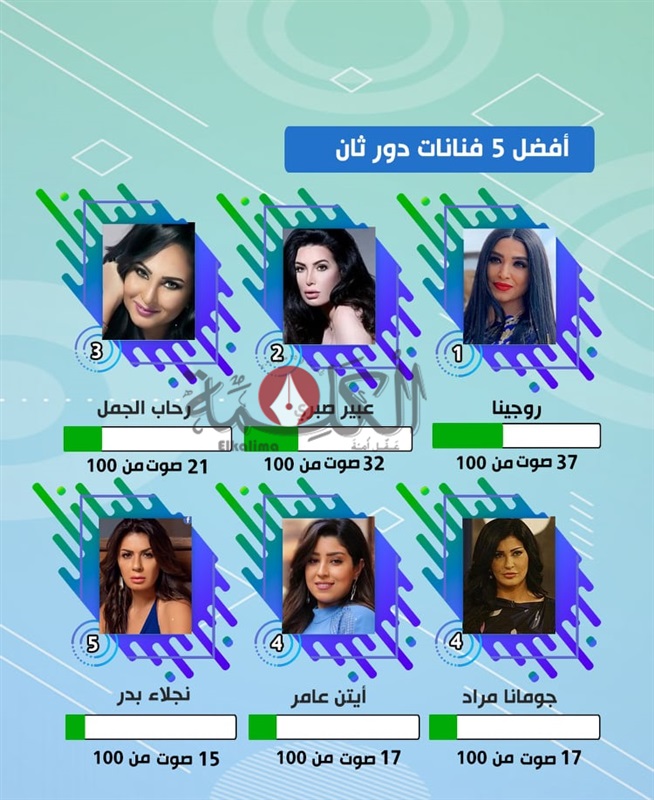 نور على 11 صوتا، وحصلت الفنانة صابرين على 7 أصوات.