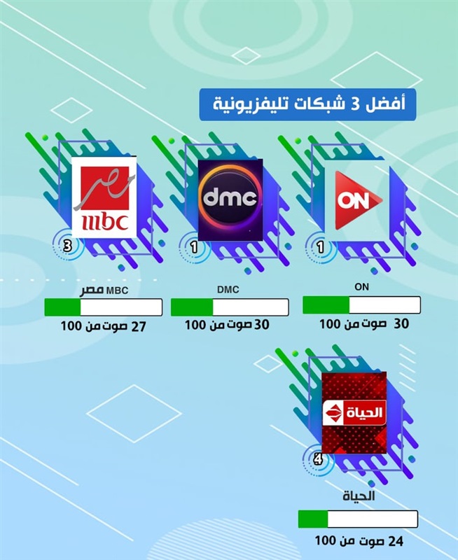 خلال استبيان "الرئيس نيوز" حول أفضل شبكة قنوات خلال شهر رمضان، وأفضل منصة إلكترونية، تفوقت شبكتي "ON" و "dmc" فى الأصوات بفارق 3 أصوات فقط عن شبكة ""mbc مصر".