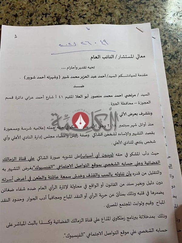 شوبير يقدم شكوى للنائب العام ضد مرتضى منصور