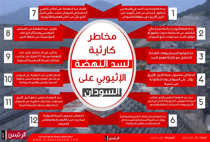 مالتى ميديا انفوجرافيك| مخاطر كارثية لسد النهضة الإثيوبي على السودان الأحد 21/يونيو/2020 - 08:53 م 6/21/2020 8:53:00 PM طباعة facebook twitter whats شارك