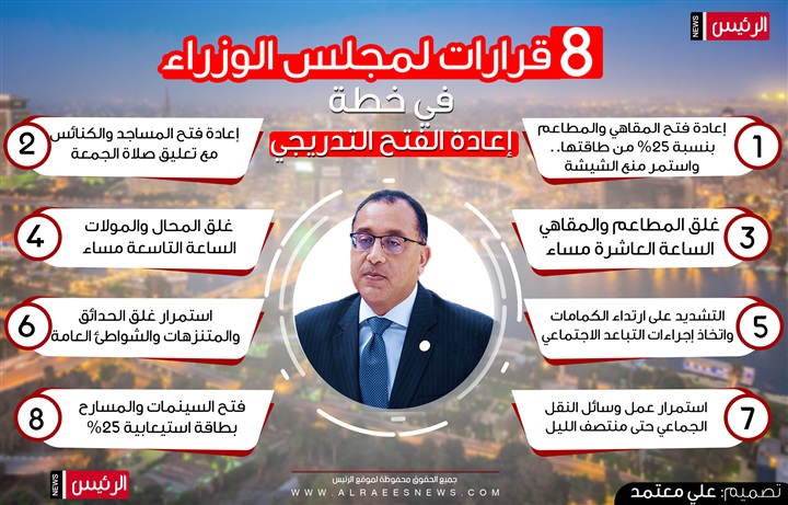 "مصر تعود للحياة"..8 قرارات حكومية لتخفيف قيود كورونا ( انفو جراف)