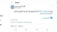 وغرد نادي مانشستر سيتي من خلال حسابه على موقع التدوينات القصيرة "تويتر" قائلا: "تهانينا لـ ليفربول على التتويج بلقب الدوري الإنجليزي الممتاز".