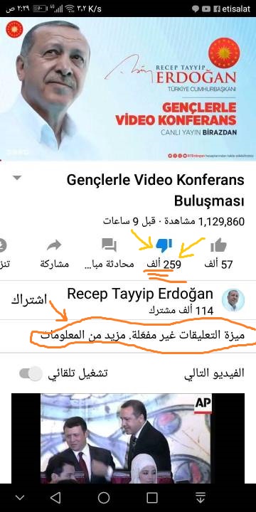 وكان الرئيس أردوغان قد ظهر في بث مباشر على الإنترنت محاورًا مجموعة من الطلاب للحديث عن الاختبارات المدرسية التي سيتم عقدها مبكرًا عن موعدها المعتاد، إلا أنه خلال الحوار انهالت موجة من التعليقات على الفيديو وقال الشباب المتابعون للبث: “لن نصوت لك” و”نلقاك في الصناديق الانتخابية”، وقام عشرات الآلاف من المستخدمين بعمل “عدم إعجاب” للفيديو، وصل عددهم إلى 342 ألف شخص، وذلك ردًا على إغلاق خاصية التعليق.