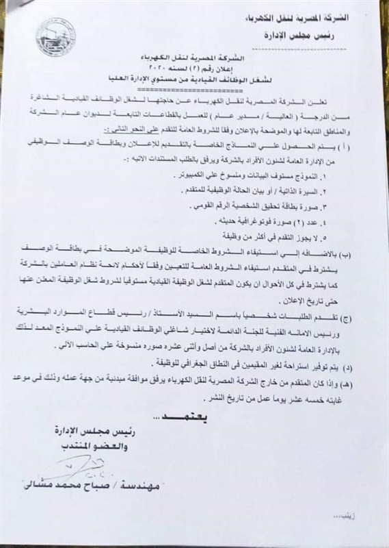 حقيقة الوظائف الشاغرة لجميع المؤهلات بوزارة الكهرباء