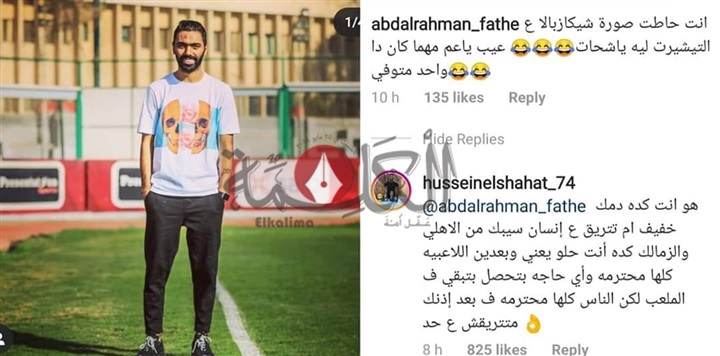ورد شخص أخر: "كلها محترمة إزاي يا كابتن حسين هو إنت ماشوفتش شيكابالا وهو بيعمل حركة غير أخلاقية تجاه جماهير الأهلي النادي اللي إنت بتلعب في صفوفه ؟ و لا الإعتبار و تقدير قيمة جماهير الأهلي بقى عايز توجيه هو كمان ؟ طب ماشوفتوش و هو بيسيء للأهلي لنفسه و عائلة عظيمة إسمها عائلة صالح سليم ؟ سبحان الله و الله على موقف بعض لاعيبة الأهلي.مابحبش أتكلم كتير عن علاقات اللاعيبة ببعضها من الأهلي و لاعبي المنافس لكن قليلاً من التقدير لجماهير النادي اللي تم الإساءة ليها بجميع طوائفها رجال و كبار و نساء و أطفال من لاعب المنافس.بلاش إستفزاز بقى".