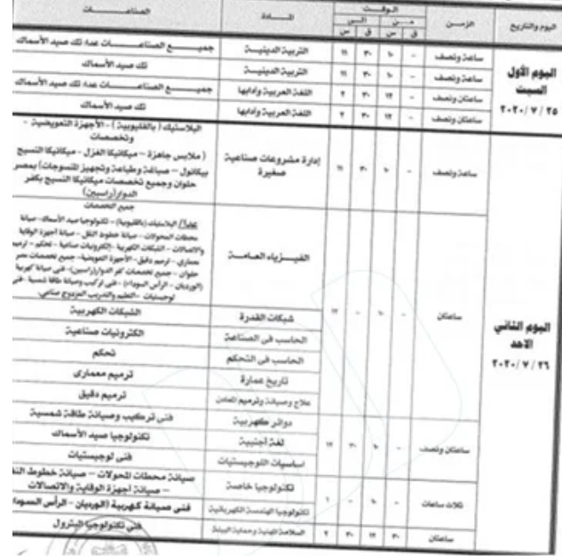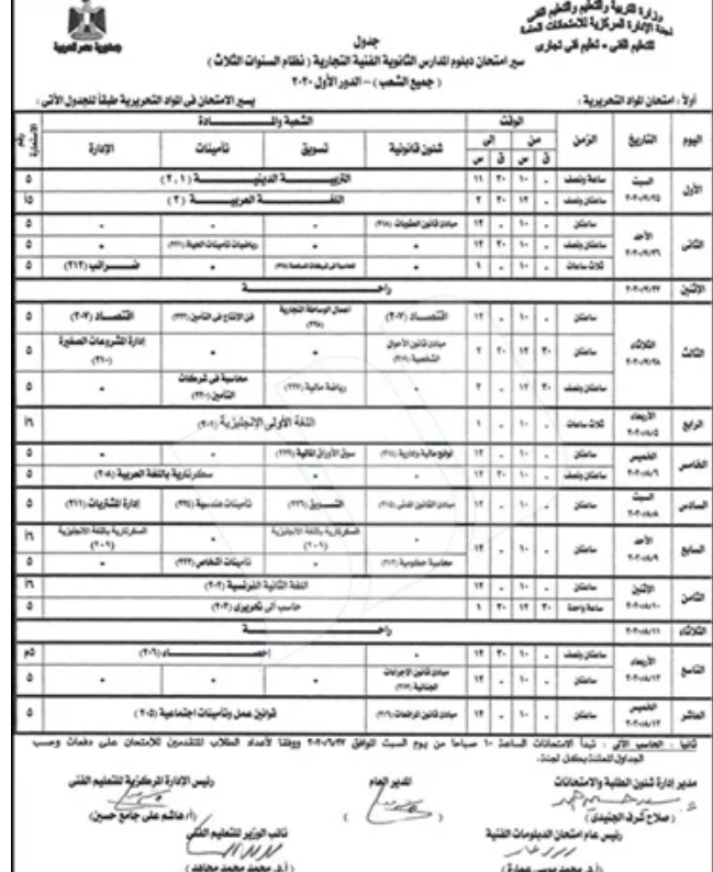 جدول امتحانات الدبلومات الفنية 2020 لنظام الثلاث والخمس سنوات