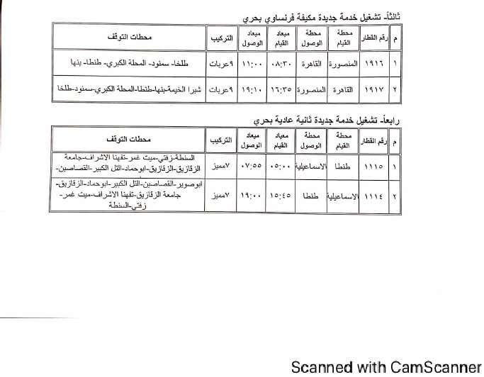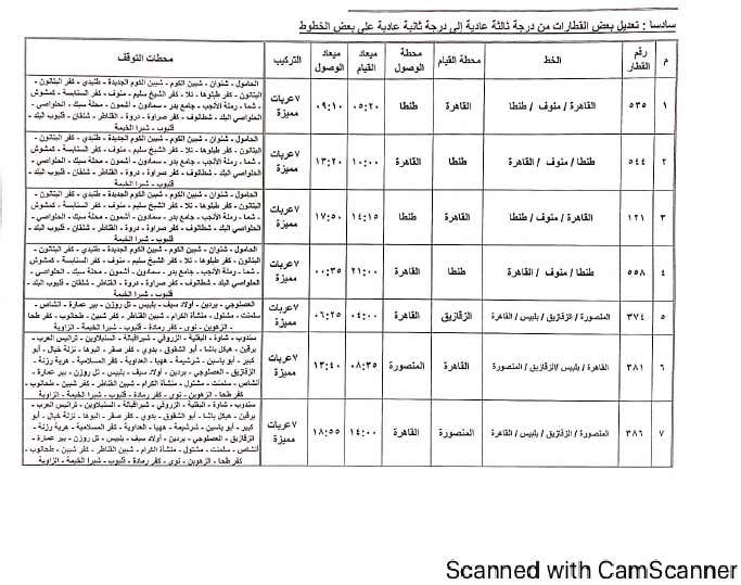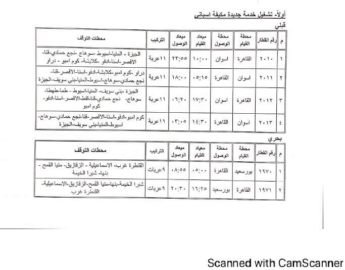 وفيما يلي قائمة القطارات التي ستطبق على الزيادة الجديدة في أسعار التذاكر: