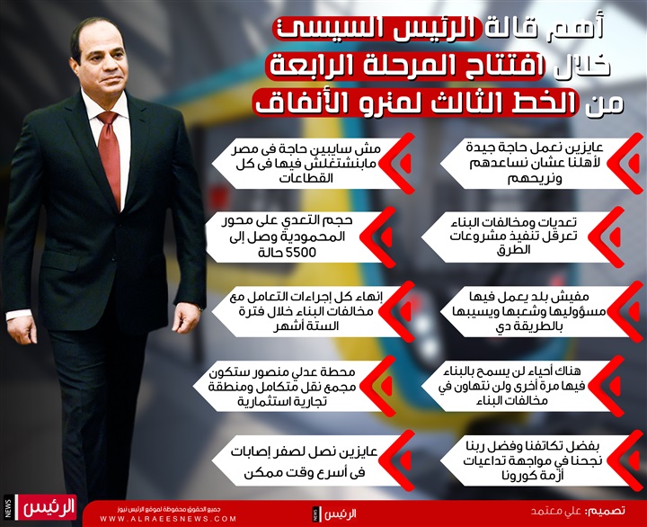 مالتى ميديا أهم قالة الرئيس السيسي خلال افتتاح المرحلة الرابعة من الخط الثالث لمترو الأنفاق (انفوجراف) الأحد 16/أغسطس/2020 - 03:26 م 8/16/2020 3:26:00 PM طباعة facebook twitter whats شارك