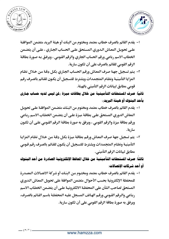 وتضمنت الضوابط صرف المعاشات بتحويلها على