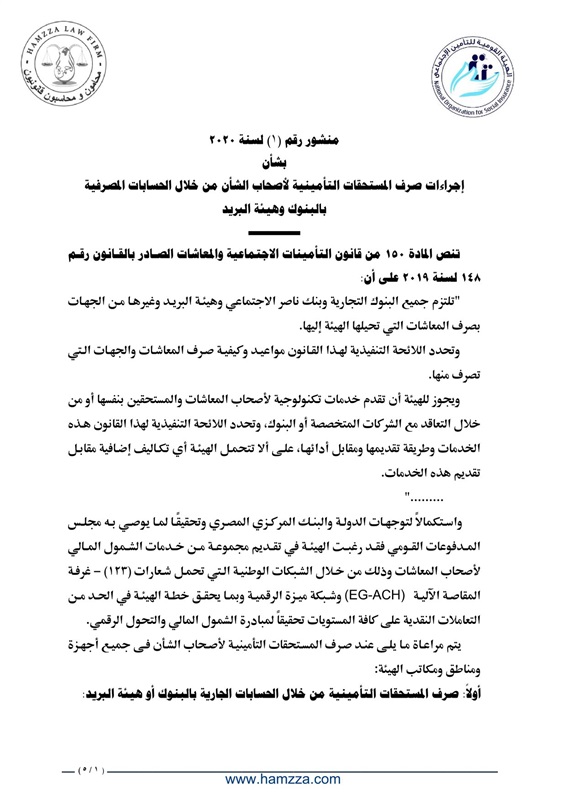 لأصحاب المعاشات لتحويل المستحقات التأمينية ضمن إجراءات الشمول المالي التي