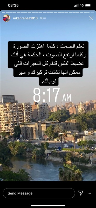 وكتب كهربا: "تعلم الصمت كلما اهتزت الصورة وكلما ارتفع الصوت، الحكمة هي ان تضبط النفس أمام كل التغييرات اللي ممكن تشتت تركيزك، وسير نواياك".