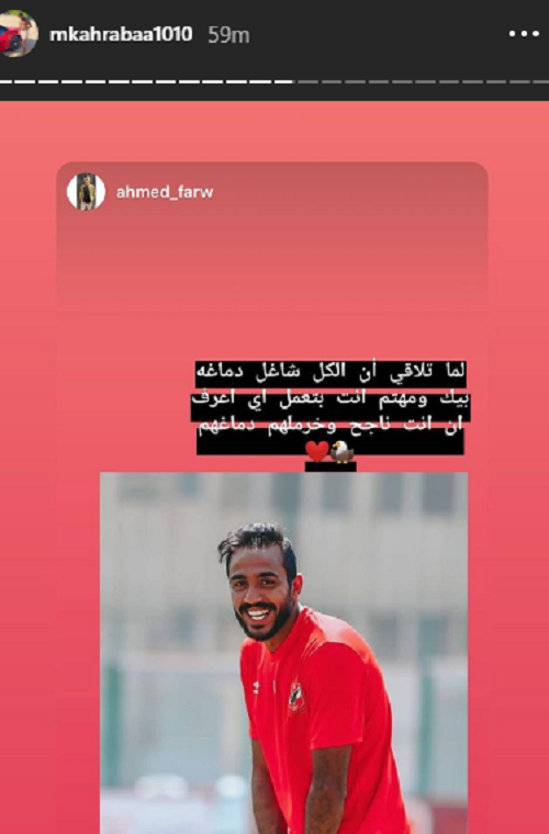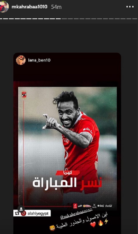 وأعاد كهربا نشر رسائل عدد من جماهير الأهلي وذلك عبر حسابه الشخصي على موقع التواصل الاجتماعي "إنستجرام".