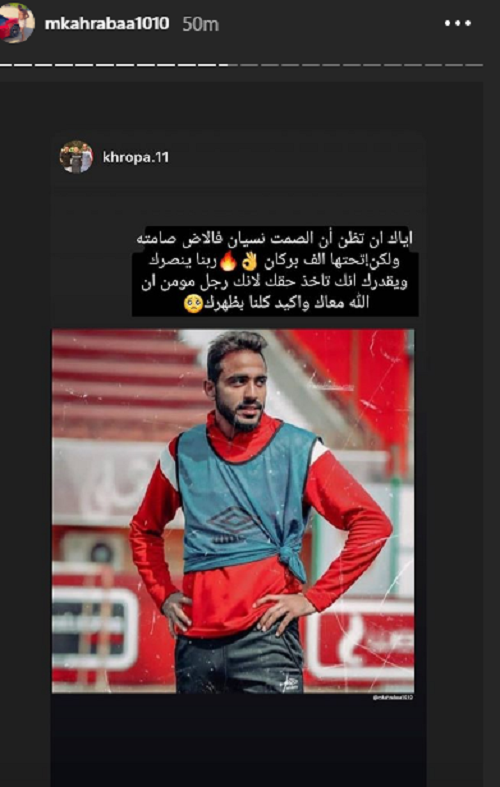 وكتب أحد المشجعين: "إياك أن تظن أن الصمت نسيان فالأرض صامتة ولكن تحتها ألف بركان، ربما ينصرك ويقدرك انك تاخد حقك لانك رجل مؤمن ان الله معاك وأكيد كلنا في بظهرك".