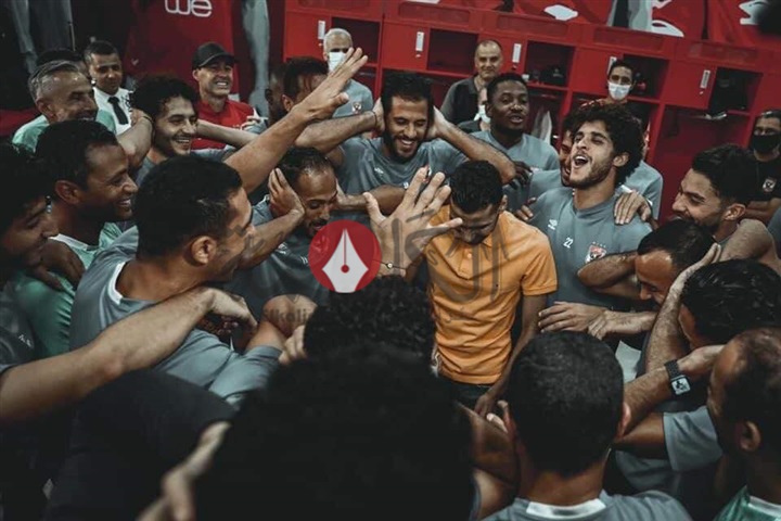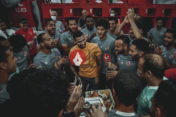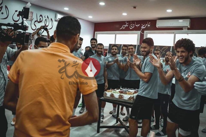 وقام جهاز الكرة بإحضار تورتة كبيرة عليها صورة مؤمن، وقام اللاعب بتقطيعها في غرفة خلع الملابس، وسط تصفيق وغناء زملائه، لمساندته ودعمه لتخطي الظروف الصحية التي يمر بها.