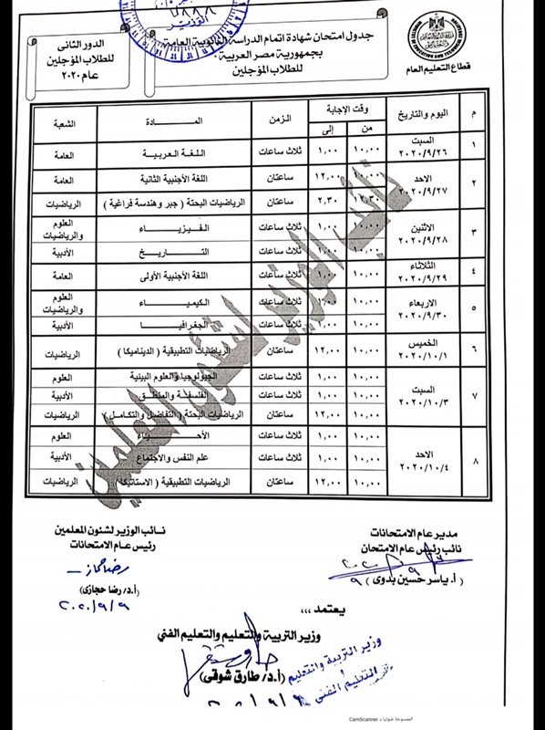 جدول امتحانات الثانوية العامة للدور الثاني المؤجلين
