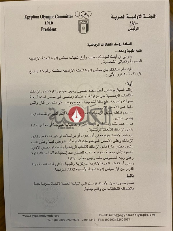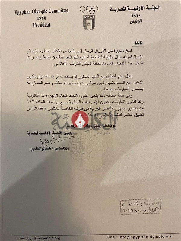 اتخذت اللجنة الأولمبية برئاسة هشام حطب، خطوة جديدة منذ قليل، بعد عزل رئيس نادي الزمالك، وإيقافه 4 سنوات خلال الأيام الماضية.