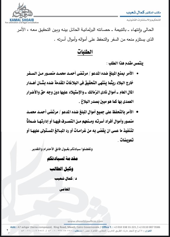 بالمستندات.. طلب بمنع مرتضى منصور من السفر خوفا من هروبه للخارج