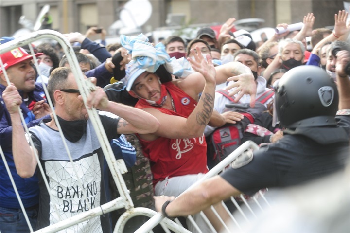 ونشبت اشتباكات بين الجماهير الحاضرة، وقوات الأمن المتواجدة، حول القصر الرئاسي، لتأمين مراسم تشييع جنازة مارادونا، الأمر الذى جعل المسئولين، يقررون نقل جثمان أسطورة الأرجنتين، إلى مقبرة بيلا فيستا.