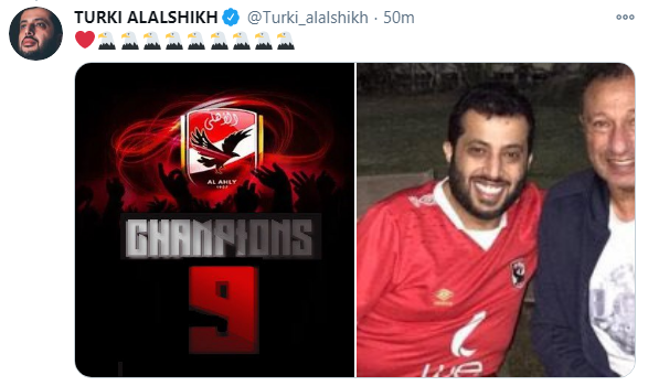 كما غرد تركي آل الشيخ عبر صفحته الرسمية على صفحته الشخصية "تويتر": "مبروك الأهلي التاسعة".