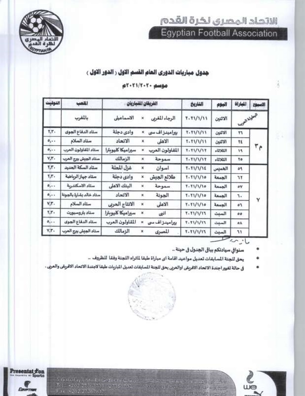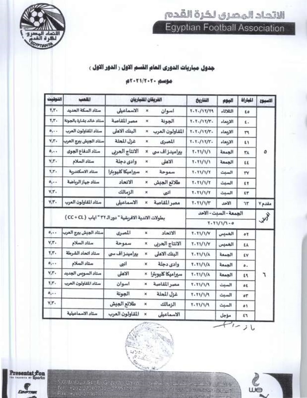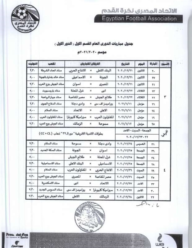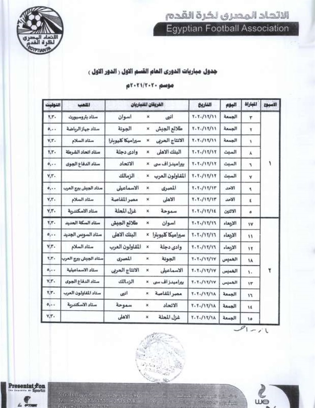 أعلنت لجنة المسابقات بالاتحاد المصري لكرة القدم، مواعيد الجولات السبعة الأولى لمسابقة الدوري الممتاز موسم 20-2021.
