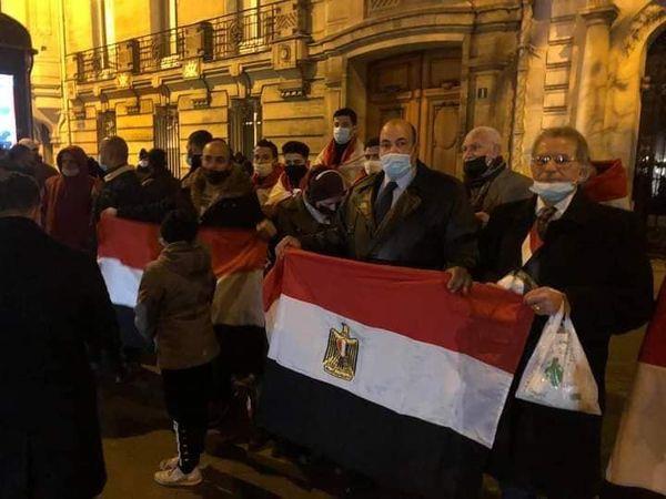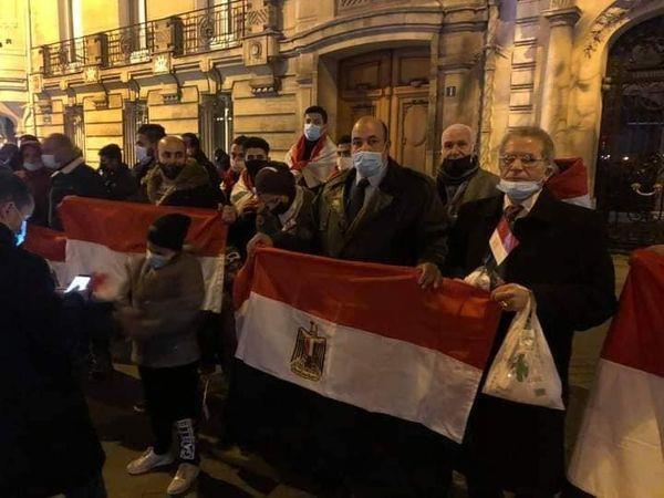 ورفعت الجالية المصرية في باريس، الأعلام المصرية، ورددوا هتافات: «تحيا مصر».