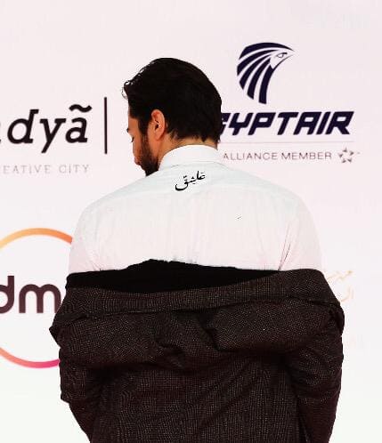 وجاءت طريقه ترويجه للفيلم من خلال ظهور اسم الفيلم علي البدله التي ظهر بها على ريد كاربت الحفل الختامي للمهرجان أمام جميع القنوات الفضائية ووسائل الاعلام الذين قاموا بالتقاط الصور الفوتوغرافيه له لحظه وصوله الحفل.