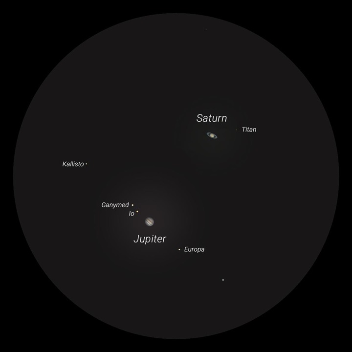 وأكد أن المشهد سيكون لافتا للنظر بدءا من يوم 17 ديسمبر الحالي، حيث يكون زحل على يسار المشترى وحتى اقترانهما التام فى 21 ديسمبر الحالي، حيث يتبادلان أماكنهما في السماء فيكون المشتري على يسار زحل، ثم متابعة ابتعادهما التدريجي عن بعضهما البعض والذي سيكون ملحوظا بدأ من يوم 25 ديسمبر الحالي وحتى نهاية العام الى ان يبدو انفصالهما واضح للعيان .