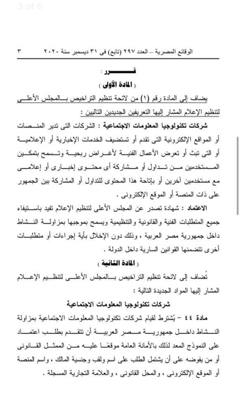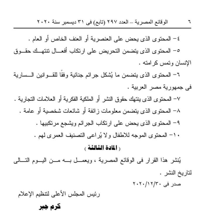 أصدر المجلس الأعلى لتنظيم الإعلام، برئاسة الكاتب الصحفى كرم جبر عددا من المواد الجديدة بلائحة تنظيم التراخيص.
