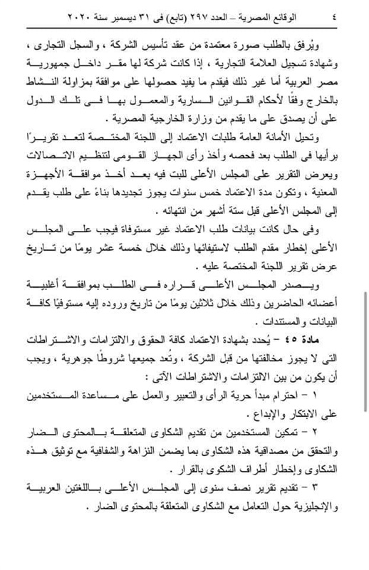 وأكد المجلس اتخاذ كافة الإجراءات القانونية ضد الكيانات المخالفة التي لم تتقدم لتوفيق أوضاعها وفقًا للسلطة المخولة له قانونًا.