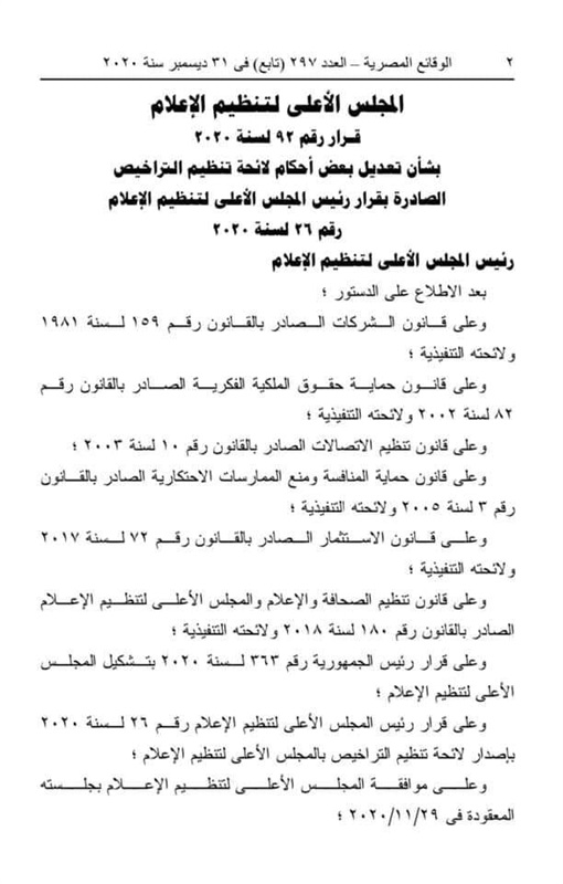 "الأعلى للإعلام" يصدر موادًا جديدة بلائحة تنظيم التراخيص
