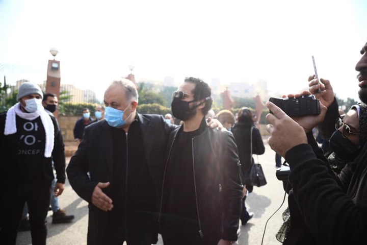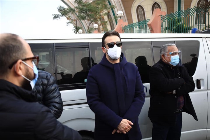 النجم كريم عبد العزيز إلى مسجد الشرطة للمشاركة فى تشييع جثمان الكاتب والسيناريست