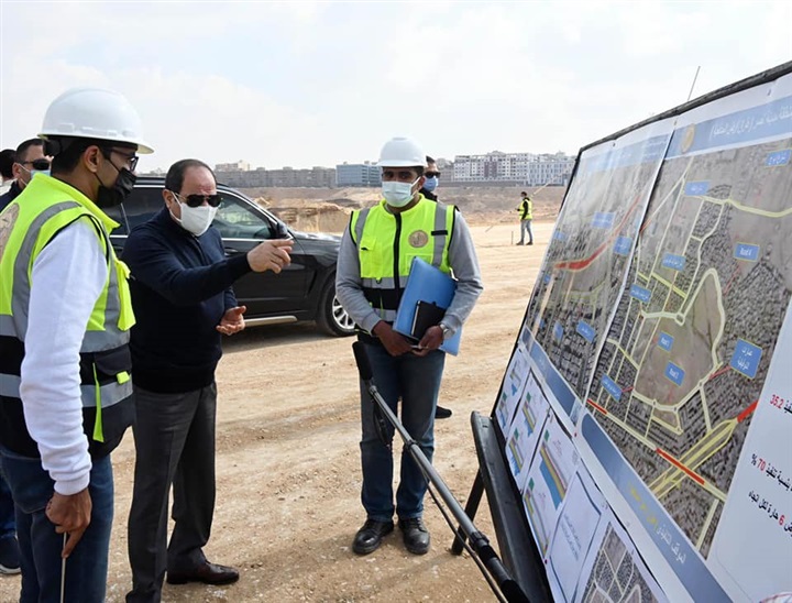السيسي يتفقد مشروع مركز النقل المتكامل ومشروعات طرق شرق القاهرة (صور)