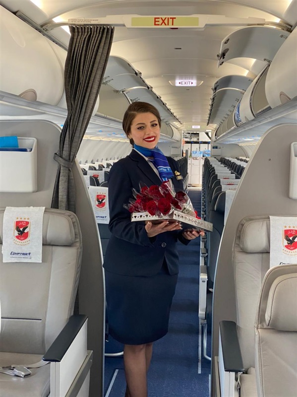 بالورود والشكولاتة.. «مصر للطيران» تستقبل بعثة الأهلي علي متن طائرة خاصة (صور)