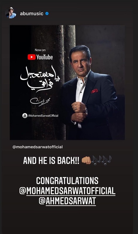أما نجم الجيل تامر حسني اختار توجيه رسالة مباشرة لمحمد ثروت عبر عدة منشورات، منوها عن إعجابه الشديد بالأغنية الجديدة وحماسه لعودة صوت مصر، قائلا: " صوتك فعلا كان واحشنا، الأغنية رائعة، مليون مبروك لأستاذنا النجم الكبير محمد ثروت"، كما وجه التحية لصديقه الملحن محمد رحيم الذي شارك في عمل الأغنية، بقوله: "مليرن مبروك لحبيب قلبي وصديق العمر الموسيقار محمد رحيم".