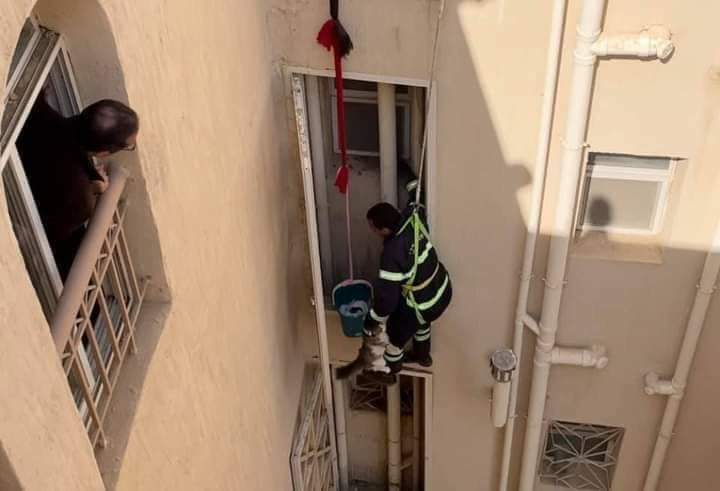 في مشهد تجلت فيه روح العمل والمشاعر الإنسانية الرقيقة، تمكن رجال الحماية المدنية بالقاهرة من إنقاذ قطة عالقة أعلى ماسورة لمدة أسبوع داخل منور عقار سكنى بالقاهرة الجديدة، بعد فشل محاولات السكان في إنقاذها.