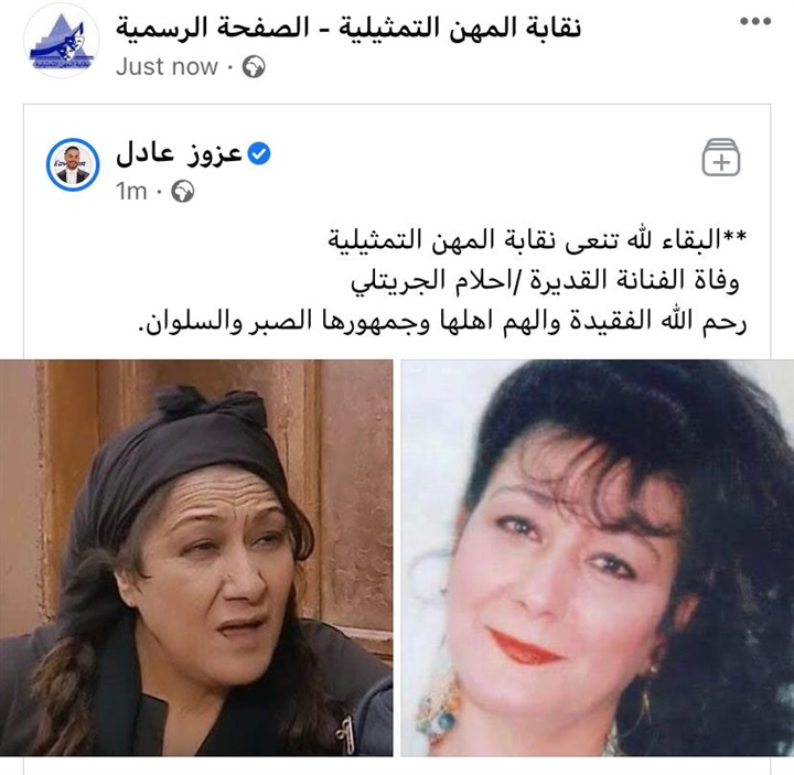 أعلنت نقابة المهن التمثيلية وفاة الفنانة القديرة أحلام الجريتلى قبل قليل عن عمر يناهز 70 عاما، ولم يتم الكشف عن سبب الوفاة حتى الآن، كما نشر الفنان عزوز عادل عضو نقابة المهن التمثيلية عبر صفحة النقابة الرسمية على موقع التواصل الاجتماعى "فيس بوك"، قائلاً: "البقاء لله تنعى نقابة المهن التمثيلية الفنانة أحلام الجريتلي، رحم الله الفقيدة وألهم أهلها وجمهورها الصبر والسلوان".