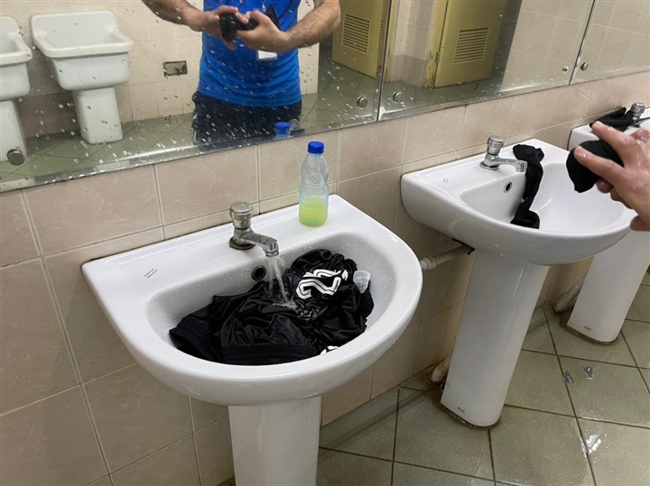 وفوجئت البعثة برش مادة بيضاء غريبة على ملابس لاعبي الفريق قبيل وصولهم لملعب المباراة، أصابتهم بالحكة في جسدهم وسط شكوى من جميع أفراد البعثة سواء لاعبين أو جهاز فني.
