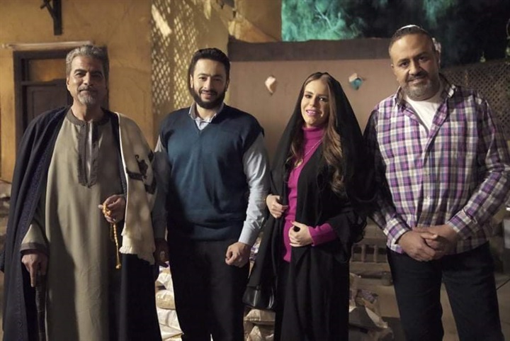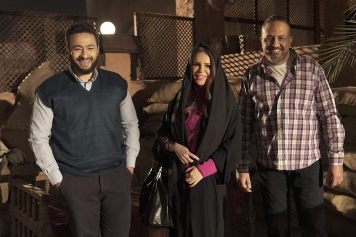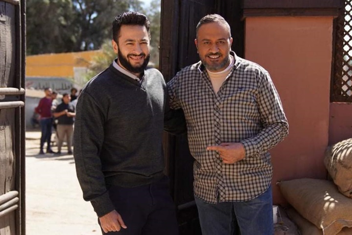 صور| خالد سرحان وحمادة هلال ودنيا عبد العزيز فى كواليس «المداح»