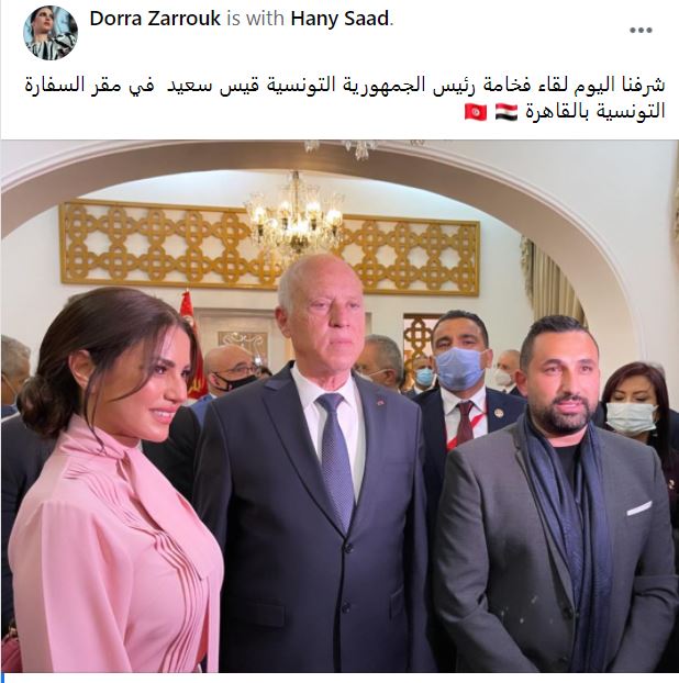 لقاء فخامة رئيس الجمهورية التونسية، قيس سعيد، في مقر السفارة التونسية بالقاهرة"،