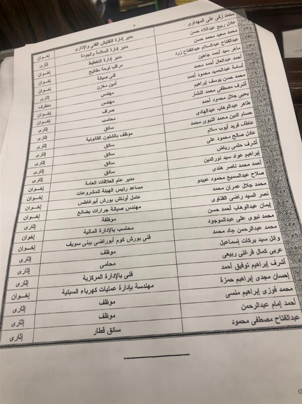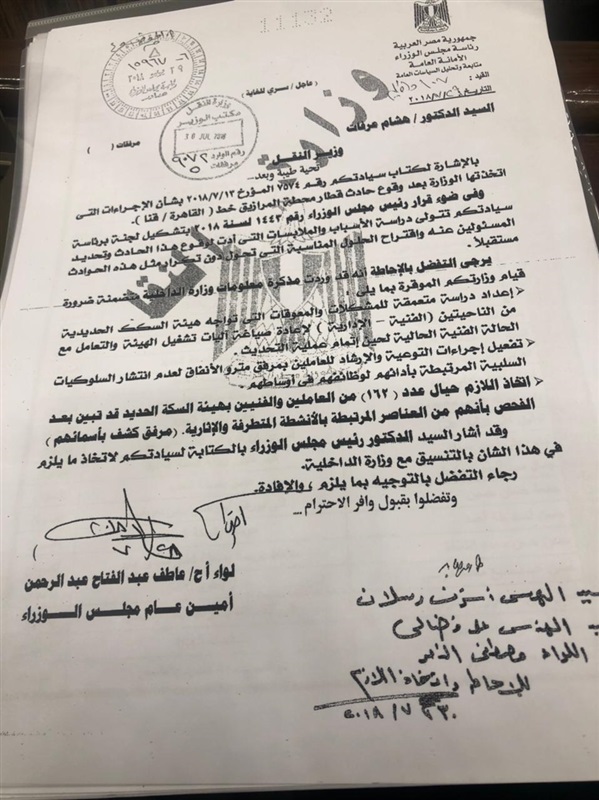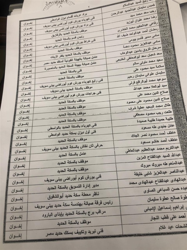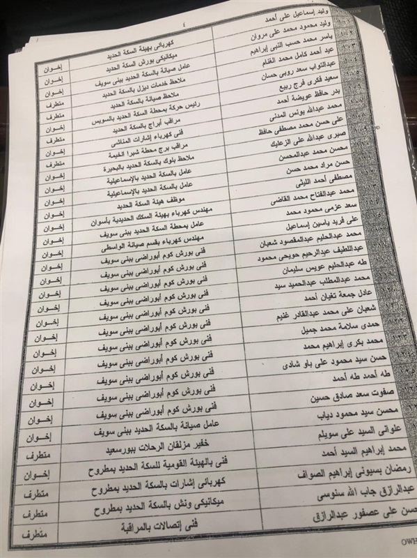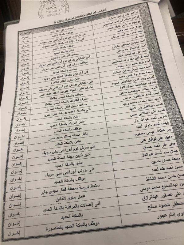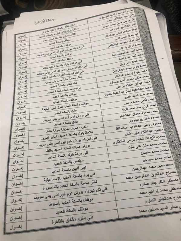 وكشف بكري عن خطابات منذ 2018 موجهة من أمين عام مجلس الوزراء، لوزير النقل السابق هشام عرفات، ورد فيه "بناء على تحريات الأمن الوطني قطاع السكة الحديد فيه 162 إخوانيا، هذه هي الأسماء وهذا هو الخطاب والتصنيف، 162 إخواني متطرف كلهم في القطاع الفني، زاد العدد إلى 258"، موضحا أنه "سلم الأمانة العامة الأسماء بالتصنيف".