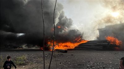 السيطرة على حريق ضخم بمخزن مواسير بلاستيكية في سنتريس بالمنوفية